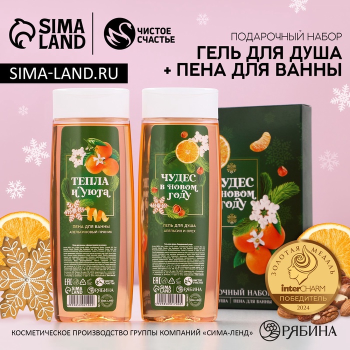 Подарочный набор женский «Чудес в Новом Году»: гель для душа и пена для ванны, 2×250 мл, Чистое счастье