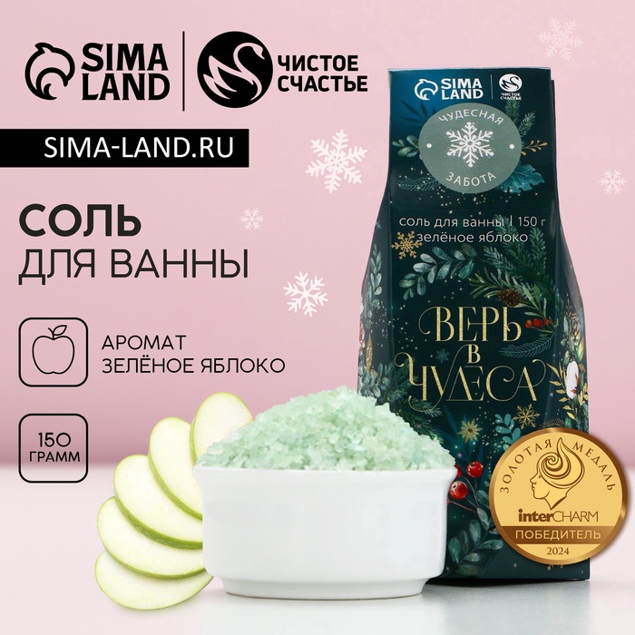 Соль для ванны «Верь в чудеса!», 150 г, аромат яблока, Чистое счастье