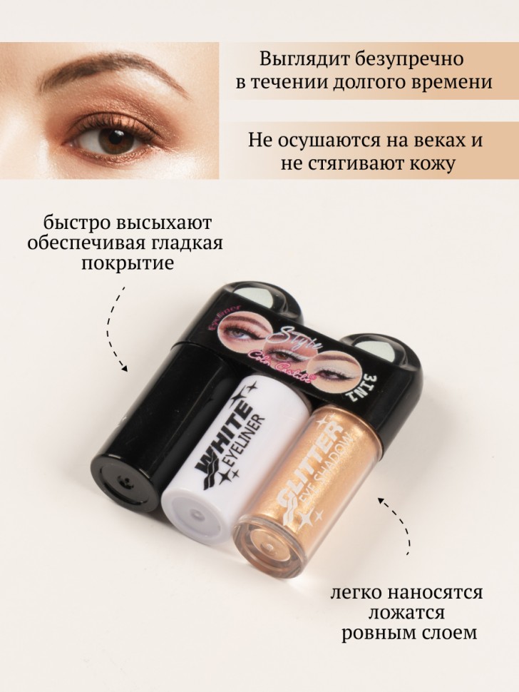 Подводка для контура глаз и жидкие тени 2-в-1 идеально сочетаются, чтобы сделать твой макияж ярким и гармоничным. Кремовые тени легко наносятся, ровно ложатся, красиво переливаются и обладают 100% цветопередачей. Тот цвет, который ты видишь во флаконе, будет блистать на твоих веках. Глитерная подводка создана для расставления акцентов в макияже, она подобрана в тон с тенями и делает макияж выразительнее и ярче. Продукты можно использовать как вместе, так и по отдельности.