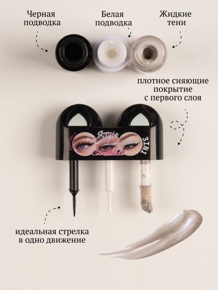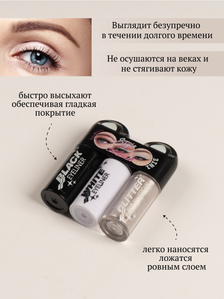 Подводка для контура глаз и жидкие тени 2-в-1 идеально сочетаются, чтобы сделать твой макияж ярким и гармоничным. Кремовые тени легко наносятся, ровно ложатся, красиво переливаются и обладают 100% цветопередачей. Тот цвет, который ты видишь во флаконе, будет блистать на твоих веках. Глитерная подводка создана для расставления акцентов в макияже, она подобрана в тон с тенями и делает макияж выразительнее и ярче. Продукты можно использовать как вместе, так и по отдельности.