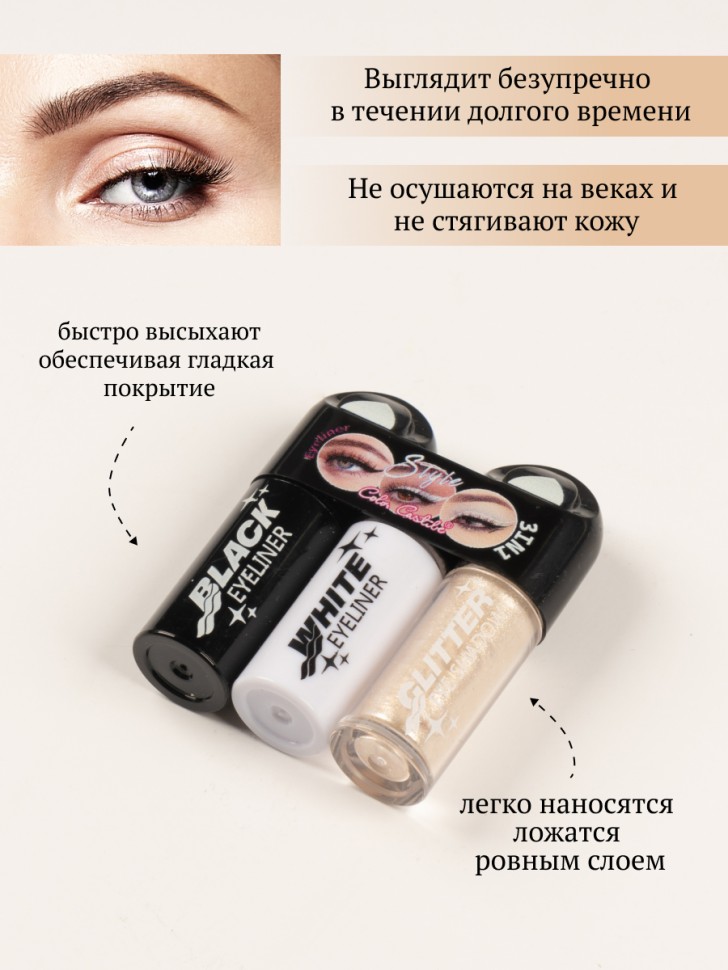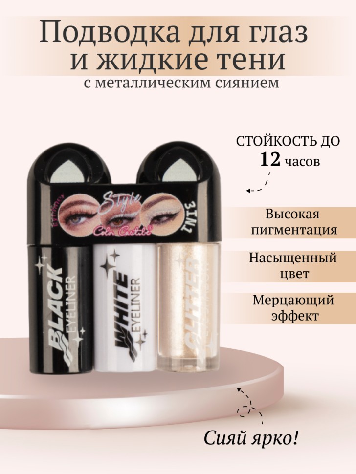 Подводка для контура глаз и жидкие тени 2-в-1 идеально сочетаются, чтобы сделать твой макияж ярким и гармоничным. Кремовые тени легко наносятся, ровно ложатся, красиво переливаются и обладают 100% цветопередачей. Тот цвет, который ты видишь во флаконе, будет блистать на твоих веках. Глитерная подводка создана для расставления акцентов в макияже, она подобрана в тон с тенями и делает макияж выразительнее и ярче. Продукты можно использовать как вместе, так и по отдельности.