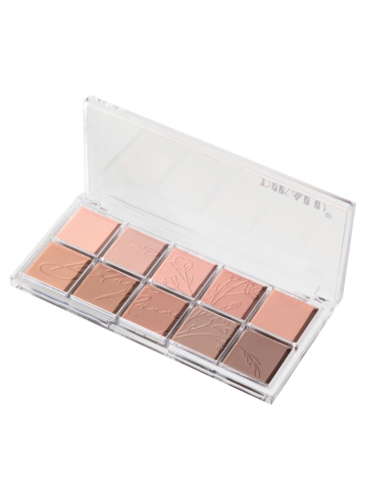 12 различных матовых и сверкающих оттенков в палетке создают на веках двойное покрытие с насыщенным блеском.