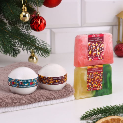 Набор 2 бомбочки "Ваниль, Хвойный лес« и 2 мыла »Глинтвейн, Горячий шоколад"