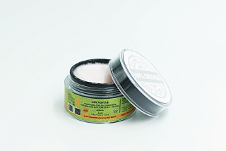 Состав: оливковщ-лавровая эмульсия сирийской оливки сорта Абу-Сатл (Olive Emulsio), джут длинноплодный слизь листьев, масла: овес дамасский зародыши, масло ши косточка, воск пчелиный желтый, пудра: морских раковин фарфоровых каури, волокна коры абельмоша мускатного, глина розовая, казанлыкская розы соцветия, природная смола мастикового дерева.