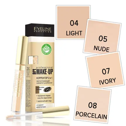 Eveline (7мл) ART.Make-Up Professional КОРРЕКТОР 2 в1 Жидкий, №07 Айвори (IVORY)
