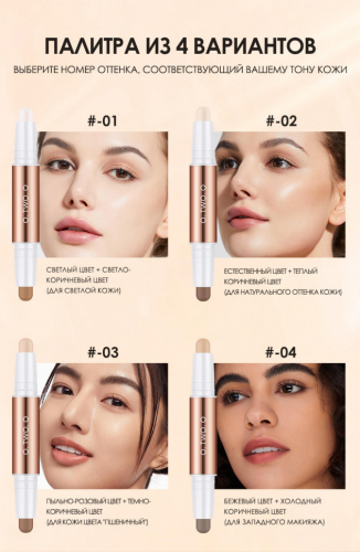 Cпособ применения: несколько раз прокрутите основание аппликатора до тех пор, пока на спонже не появится средство. Точечными движениями нанесите консилер на проблемные зоны, растушуйте границы. Средство может быть использовано в качестве контуринга, миксуйте оттенки для создания эффектного, рельефного макияжа. Качественно тушуйте границы, для создания более естественного и аккуратного образа.