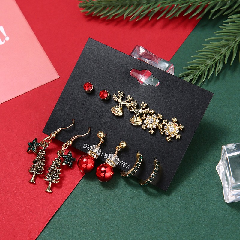 Комплект Новогодних сережек 6 пар гвоздики, подвески, кольца