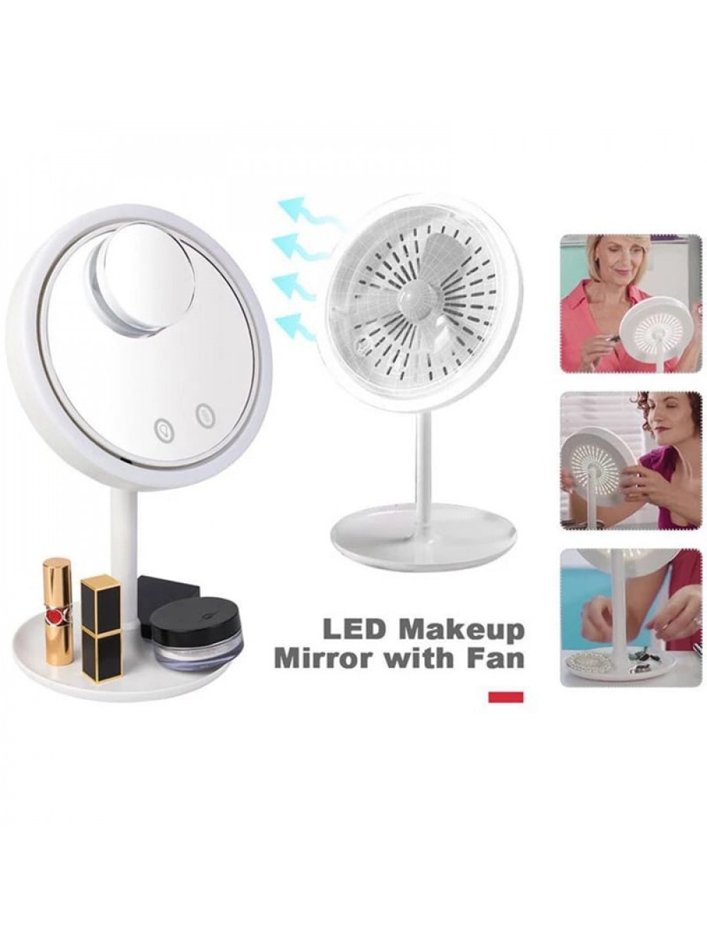 Косметическое зеркало со светодиодным сенсорным экраном и вентилятором. светодиодная подсветка. увеличение 5X. компактное зеркало для столика. гибкие косметические зеркала