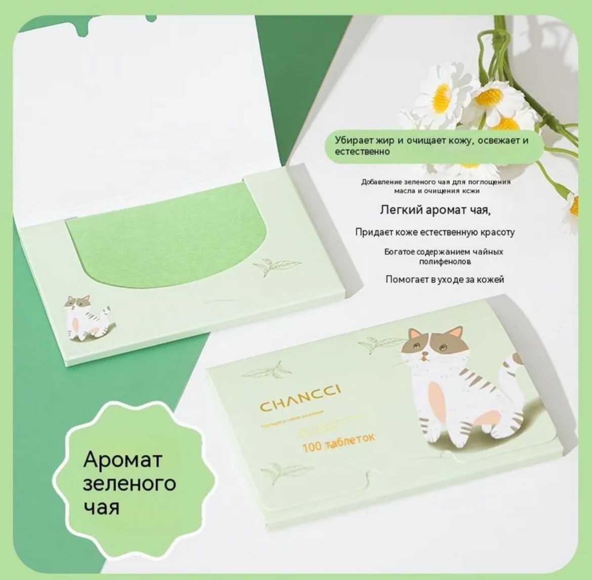 Матирующие салфетки для лица зелёный чай