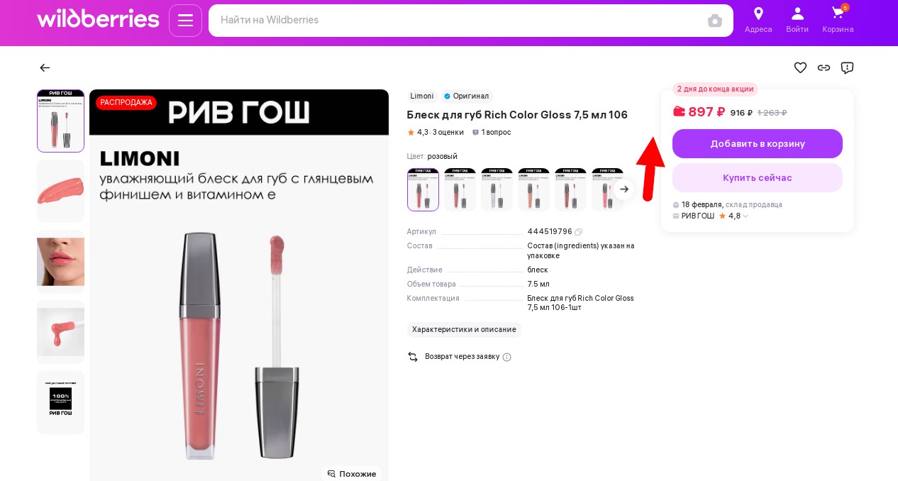 РОЗНИЦА ок.900 р!LIMONI Блеск для губ "Rich Color Gloss" тон 106,