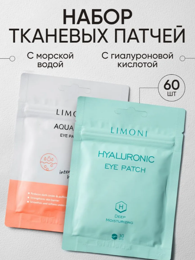 LIMONI Набор патчей (Hyaluronic Eye Patch 30pcs + Aqumax Eye Patch 30pcs) МП,