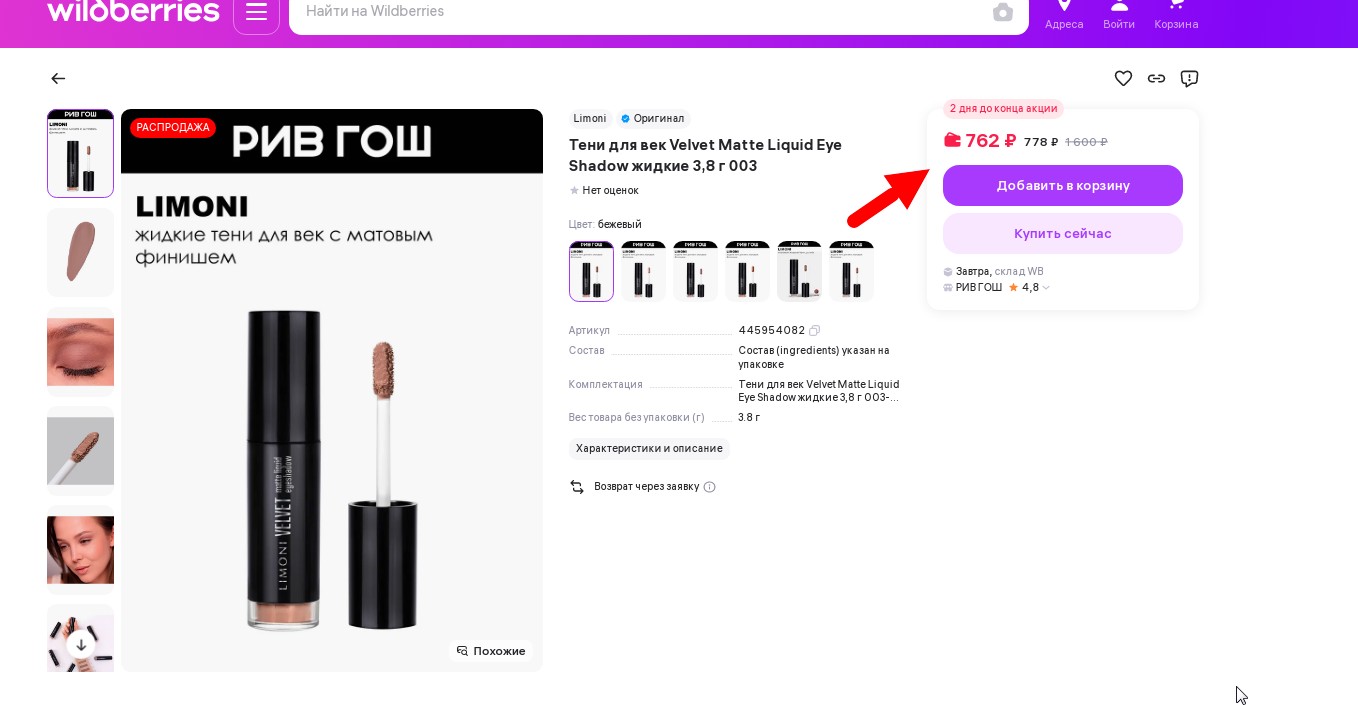 РОЗНИЦА ок. 800 р! LIMONI Жидкие тени для век "Velvet Matte Liquid Eye Shadow", тон 003,