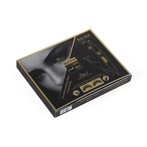 Набор подводка для глаз, карандаш для бровей и 3 пары накладных ресниц Rose Roll 3in1