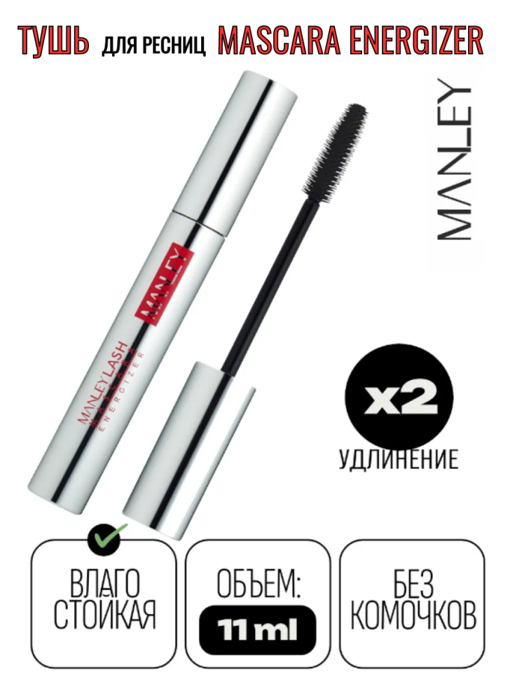 Подарочный набор 2 в 1 MANLEY. В набор входят тушь для ресниц Energizer супер объём и гель-фиксатор для бровей. Тушь обеспечивает мгновенный результат макияжа, а также стимулирует физиологический рост ресниц при длительном использовании.