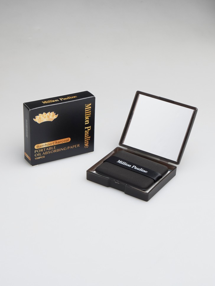 Матирующий салфетки против жирного блеска в футляре с зеркалом, Уголь, 100 шт.