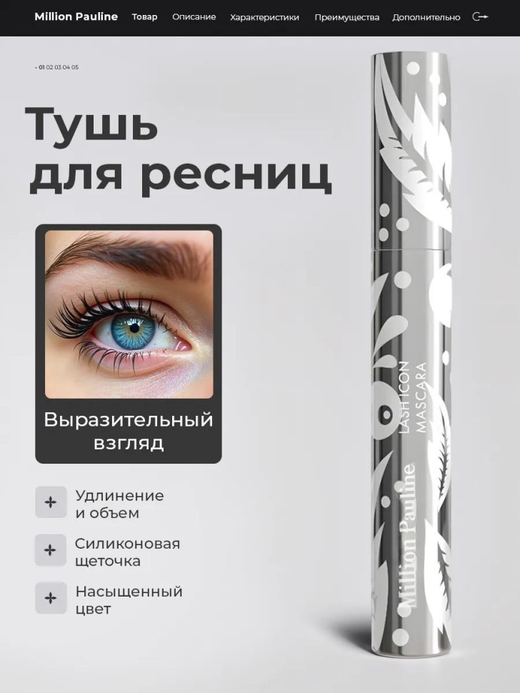 Million Pauline Тушь для ресниц удлинение и обьем с эффектом накладных ресниц