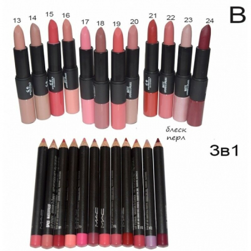 Набор 3 в 1 (матовая помада не сухая с увлажнением + матовый блеск + карандаш в тон для губ), упаковка 12 шт, тон В состоит из линейки матовых помад с увлажняющим компонентом, которые не сушат губы, помад с перламутровым блеском и карандашей тон-в-тон. Заказать косметику оптом с доставкой по России можно в компании «Кристалл Парфюм».