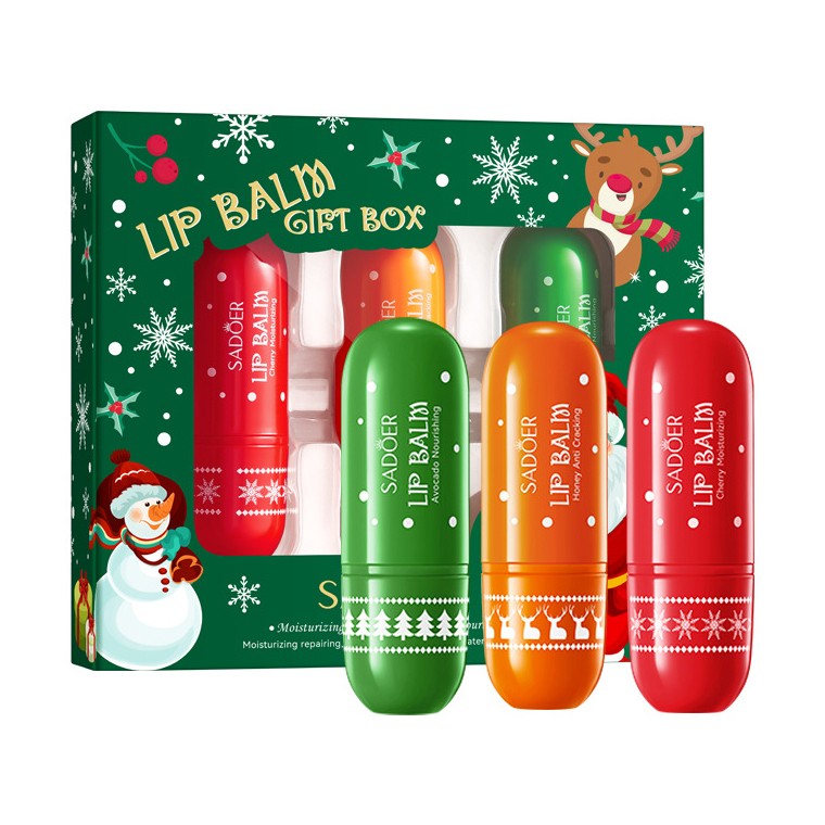 Набор бальзамов для губ Новогодний SADOER, 3 штуки.