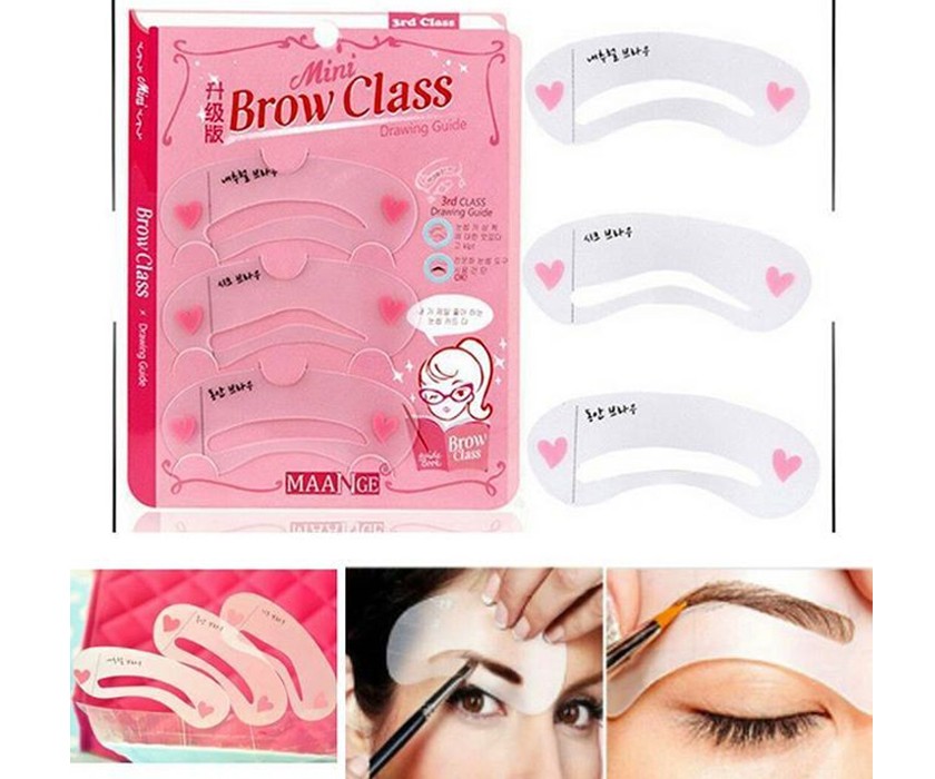В комплект входят 3 трафарета для придания необходимой формы бровям.