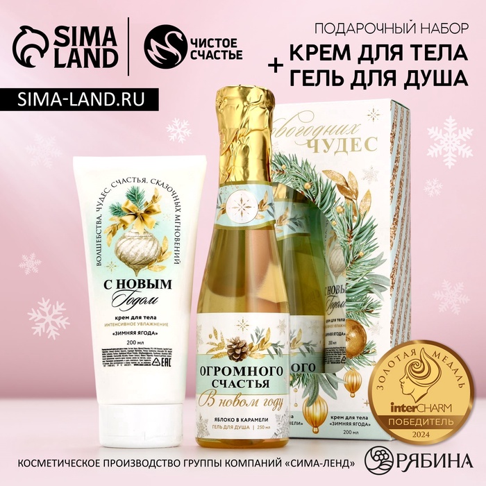 Новогодний подарочный набор косметики «Чудес»: гель для душа шампанское 250 мл и крем для тела 200 мл, Чистое счастье