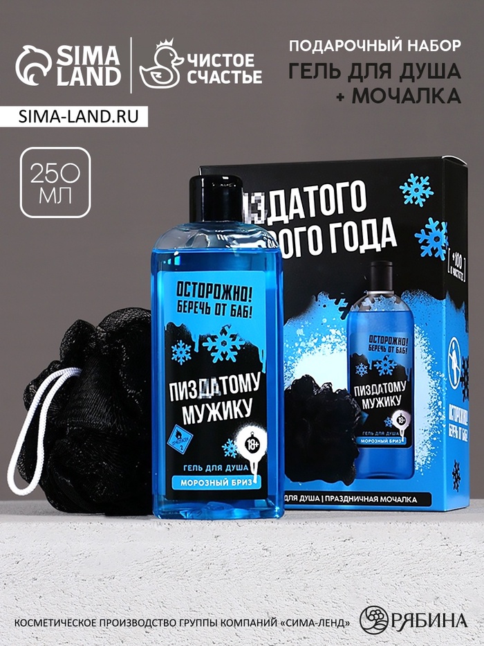 Новогодний подарочный набор косметики «Классного Нового года», гель для душа 250 мл и мочалка для тела, Чистое счастье, 18+