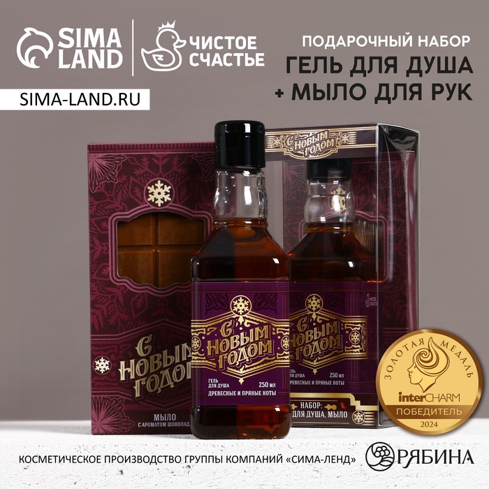 Подарочный набор новогодний мужской «С Новым годом!», гель для душа виски 250 мл и мыло для рук 80 г, Чистое счастье