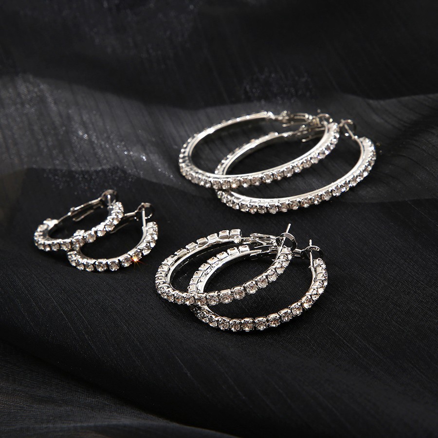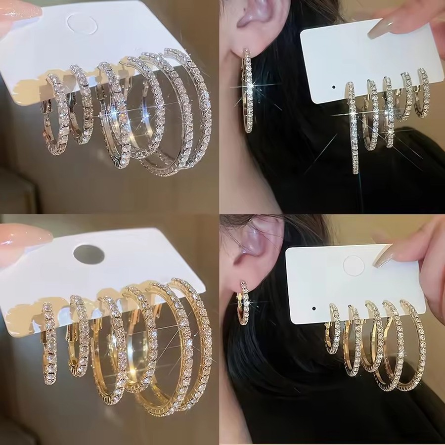 Набор сережек-колец с сияющими кристаллами 3 пары разного диаметра