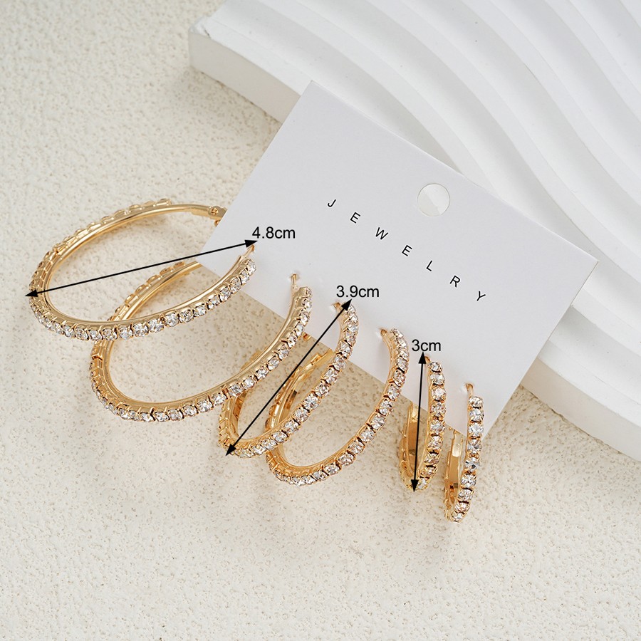 Эти серьги кольца из золотистого ме..показатьталла добавят блеска к вашему образу. Они идеально подходят для любого повода и приятно выделяются на фоне остальных аксессуаров. Сияющие кристаллы акцентируют внимание.Прекрасно сочетаются с любым стилем одежды. Классический вариант отлично подойдёт для вечернего выхода или светского события. Замок булавка обеспечивает надежность и лёгкость в использовании. В комплекте 3 пары разного размера.Размеры указаны на фотографиях.
