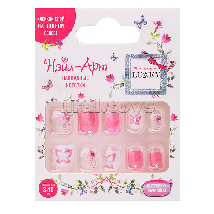 Накладные ногти Lukky Нэйл-Арт "Butterfly Diamonds" на клеевой основе, 3-10 лет,