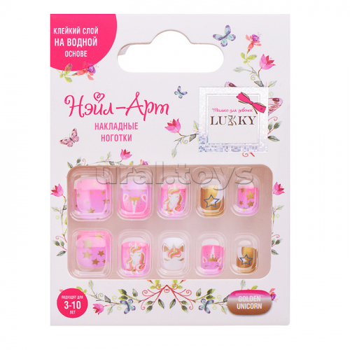Накладные ногти Lukky Нэйл-Арт "Golden Unicorn" на клеевой основе, 3-10 лет,