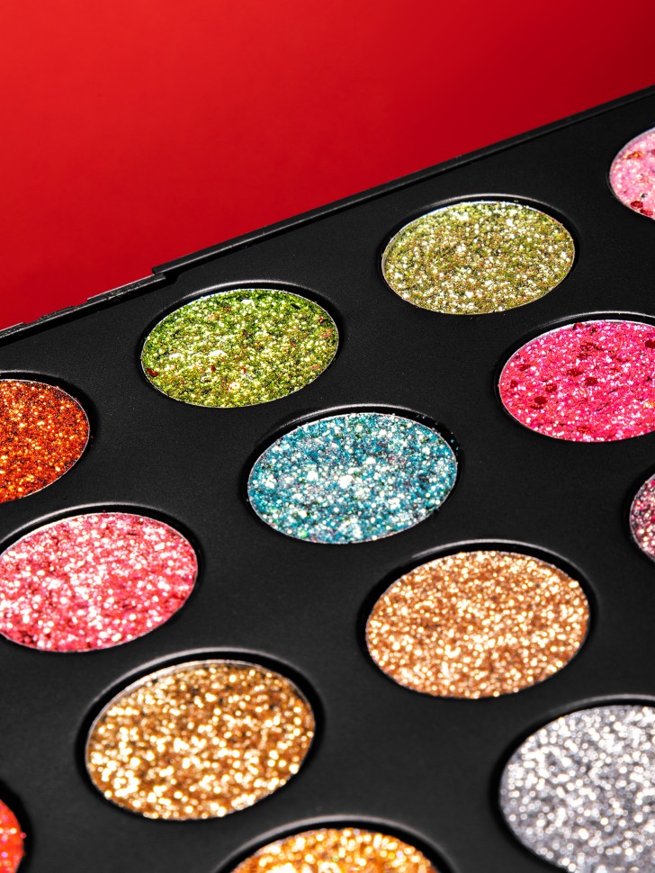 Невероятно красивая палетка глиттеров для создания креативного макияжа и расставления акцентов на глазах, лице и теле. Тени легко набираются на палец и кисть из искусственного ворса. Без труда распределяются по нужной зоне, не осыпаются и не скатываются. Сияющие частицы имеют мелкий размер, однако стоит быть аккуратнее при нанесение их на область вокруг глаз. Блестки в течение дня не осыпаются. Скоро праздники и ты хочешь сиять!