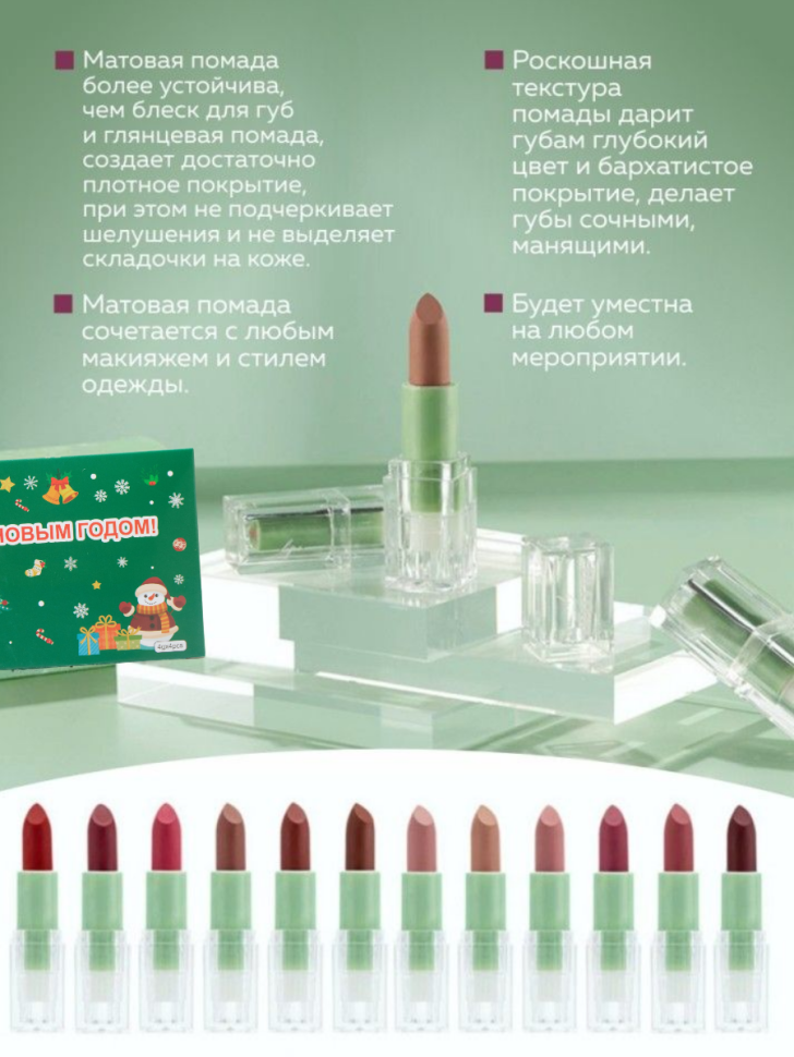 Подарочный набор матовых помад для губ NJ Cosmetics, 4 шт