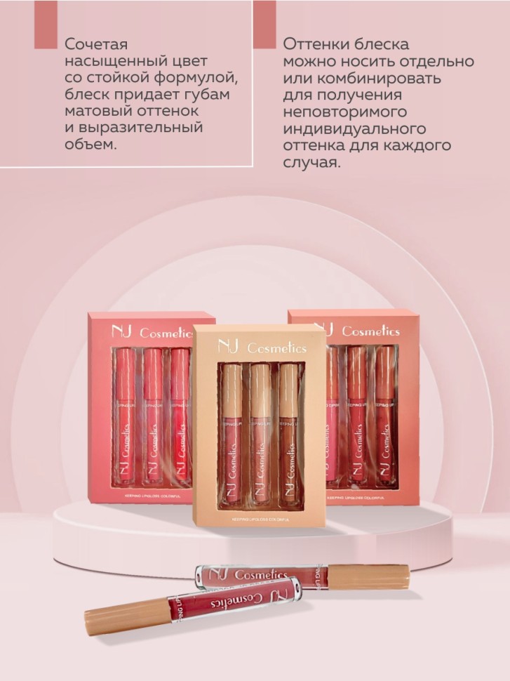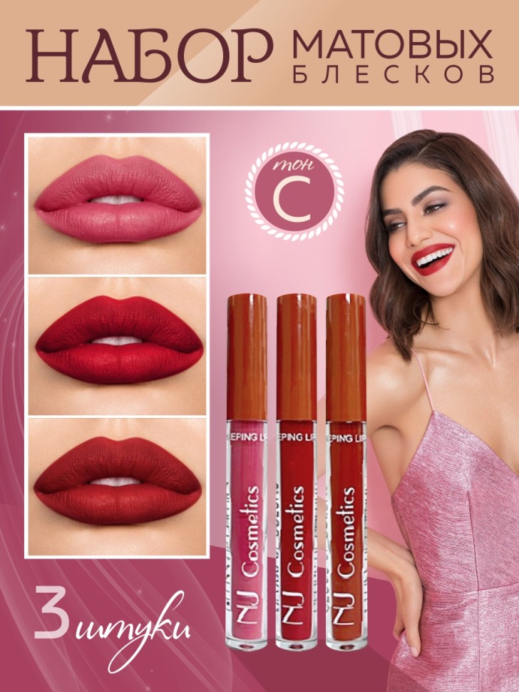 NJ Подарочный набор матовых блесков для губ 3 шт, тон C