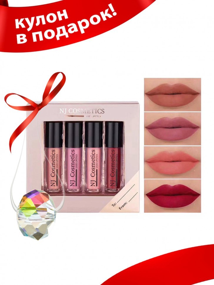 NJ Подарочный набор матовых блесков для губ+кулон в подарок, 01