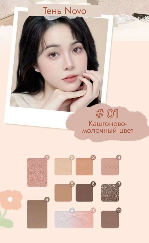 NOVO Подарочная палетка теней для век 10 цветов, тон 01