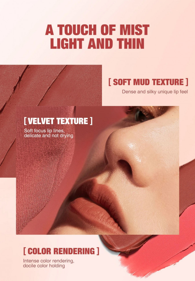 Эта матовая губная жидкая помада обладает бархатистым матовым покрытием и кремовой текстурой, которая не сушит губы. Она легко наносится и долго сохраняет насыщенный цвет. Помада представлена в 12 разнообразных оттенках для различных предпочтений.