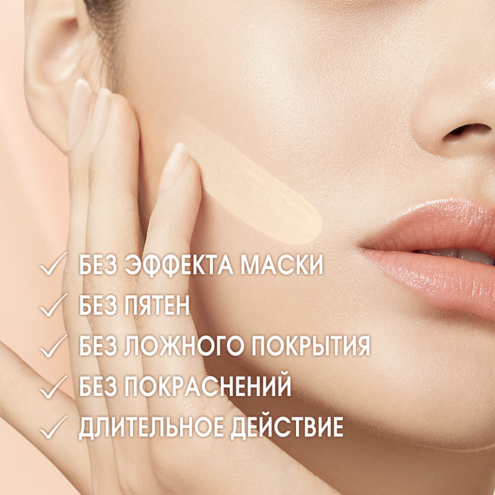 2. Полное покрытие: Плотное покрытие, при этом не создает эффекта маски и не образует темных пятен.