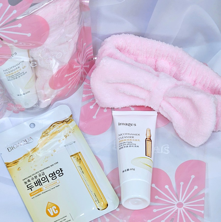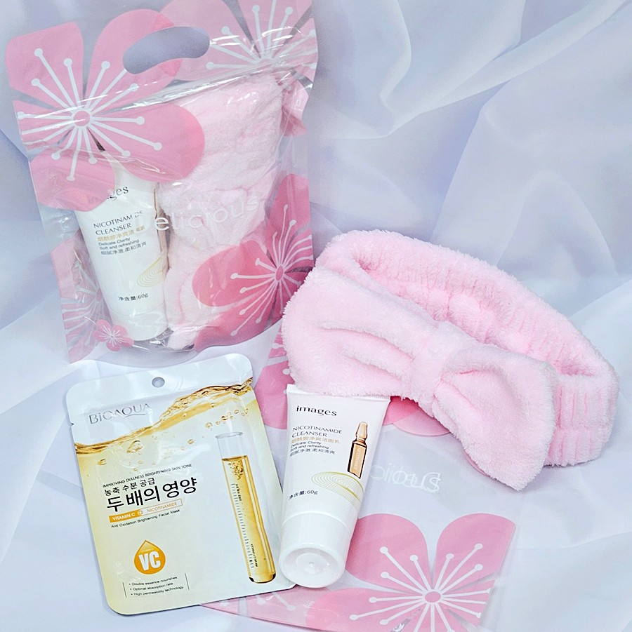 Подарочный набор в zip-пакете "Розовые Цветы" (Пенка + Маска + Повязка)