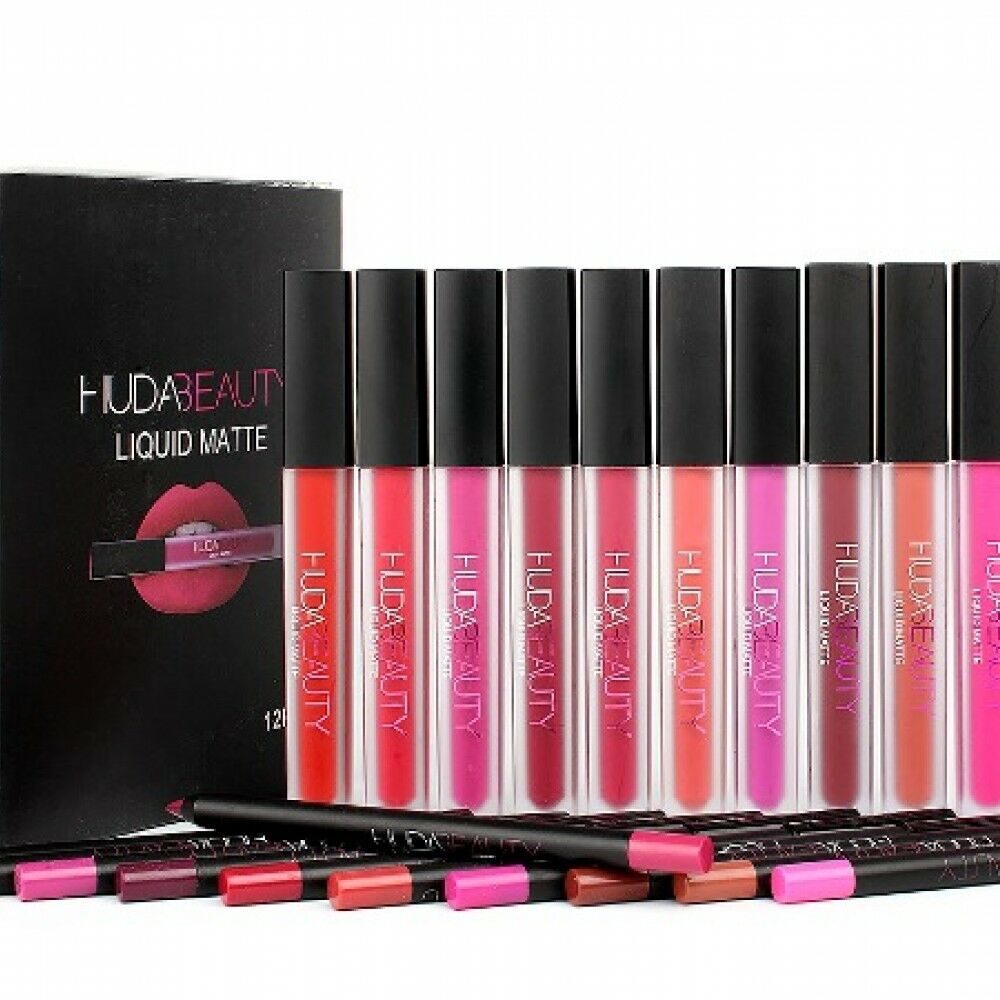 Помада жидкая матовая и карандаш Huda Beauty Liquid Matte and Lip Liner (12шт)