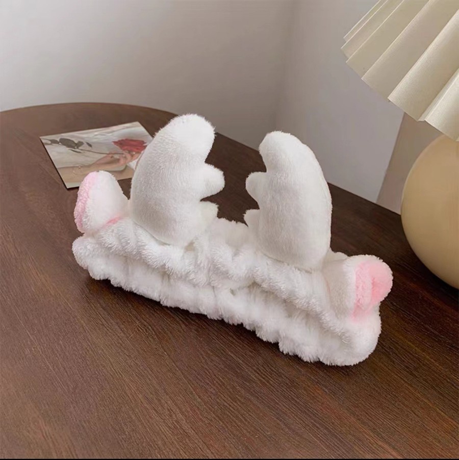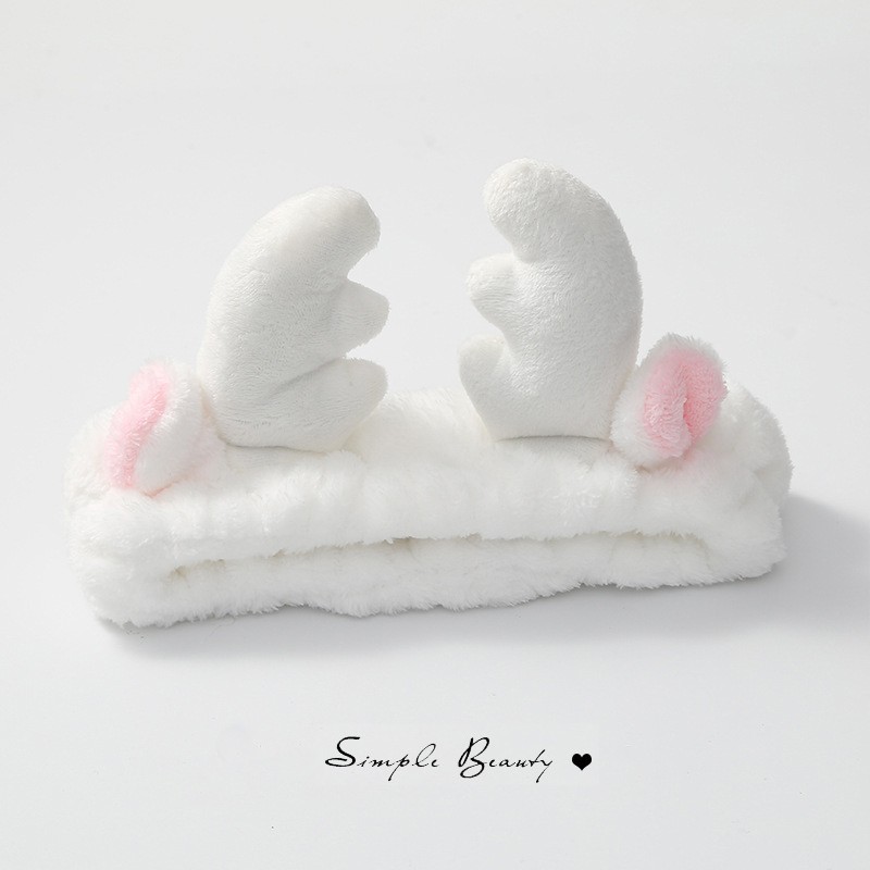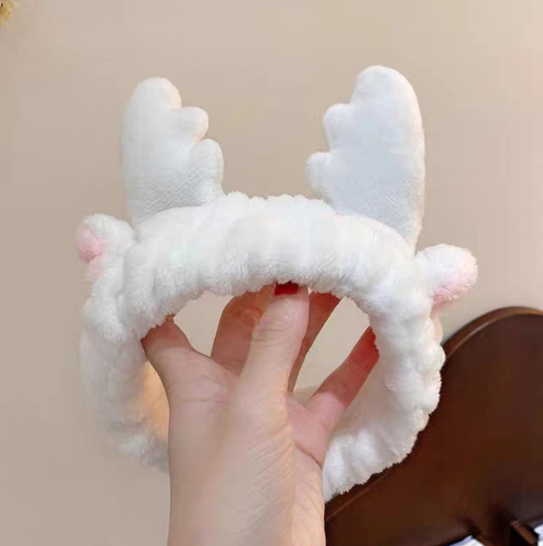 Повязка косметическая плюшевая Оленьи рожки с ушами, Цвет Белый