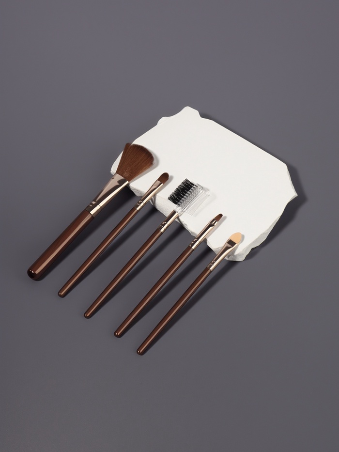 [Картинка122]Откройте для себя мир безупречного макияжа с тёмно-коричневым набором кистей. Эта коллекция из пяти кистей станет вашим надежным партнёром в достижении идеального образа. Мягкий искусственный ворс подходит для нанесения как сухих текстур, так и создания выразительных бровей, подчеркивания глаз и губ.
