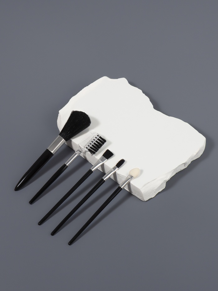 * Пять кистей для макияжа лица, глаз, бровей и ресниц.
