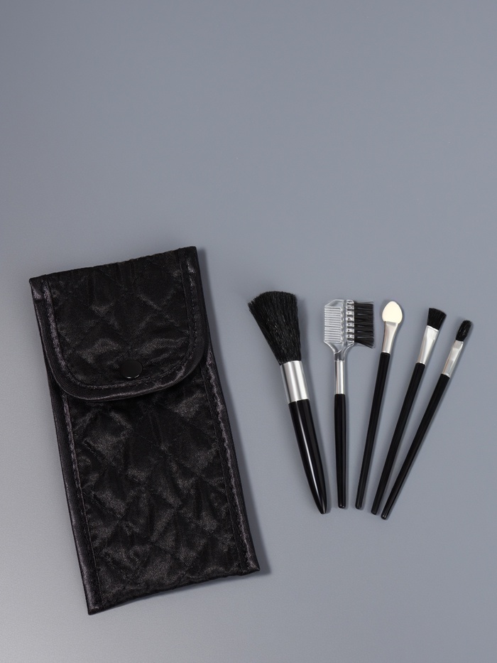Набор кистей для макияжа SMOKY, 5 шт., футляр с зеркалом, чёрный
