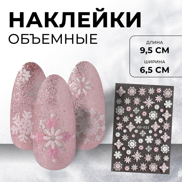 Наклейки для ногтей «Узоры», объемные, белые, розовые