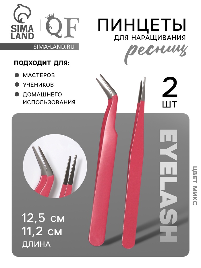 Пинцеты для наращивания ресниц, набор - 2 шт., МИКС