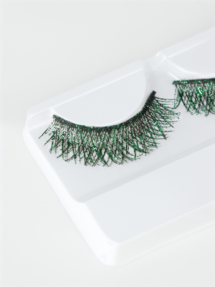 Откройте для себя возможность создавать уникальные образы с помощью накладных ресниц, которые словно созданы для того, чтобы подчеркнуть вашу индивидуальность. Эти зелёные ресницы длиной 14 мм украшены блёстками, превращая взгляд в настоящий акцент вашего стиля. Благодаря их яркому цвету и мерцающему декору, Вы сможете добавить изюминку как в повседневный макияж, так и в вечерний образ.