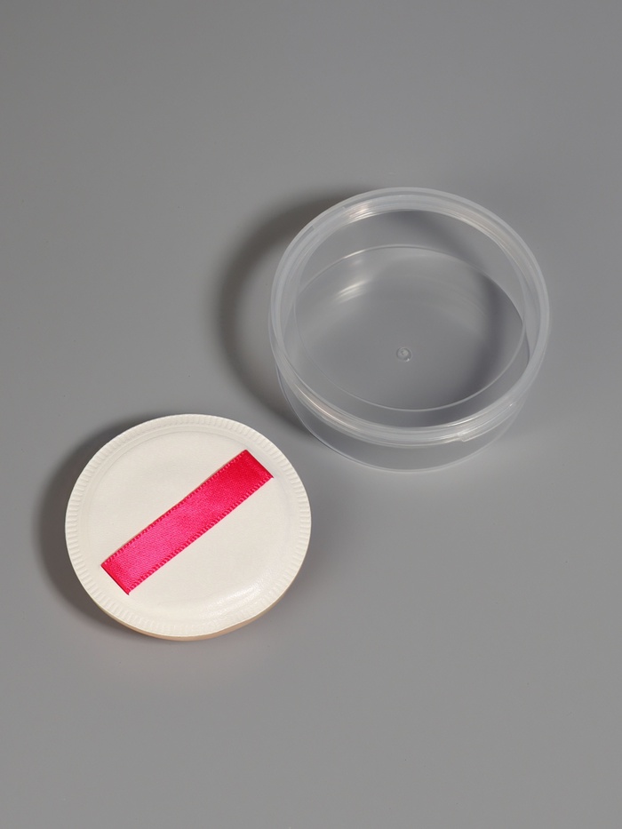 Спонж для макияжа, с держателем, d=5 см, в футляре, круглый, бежевый