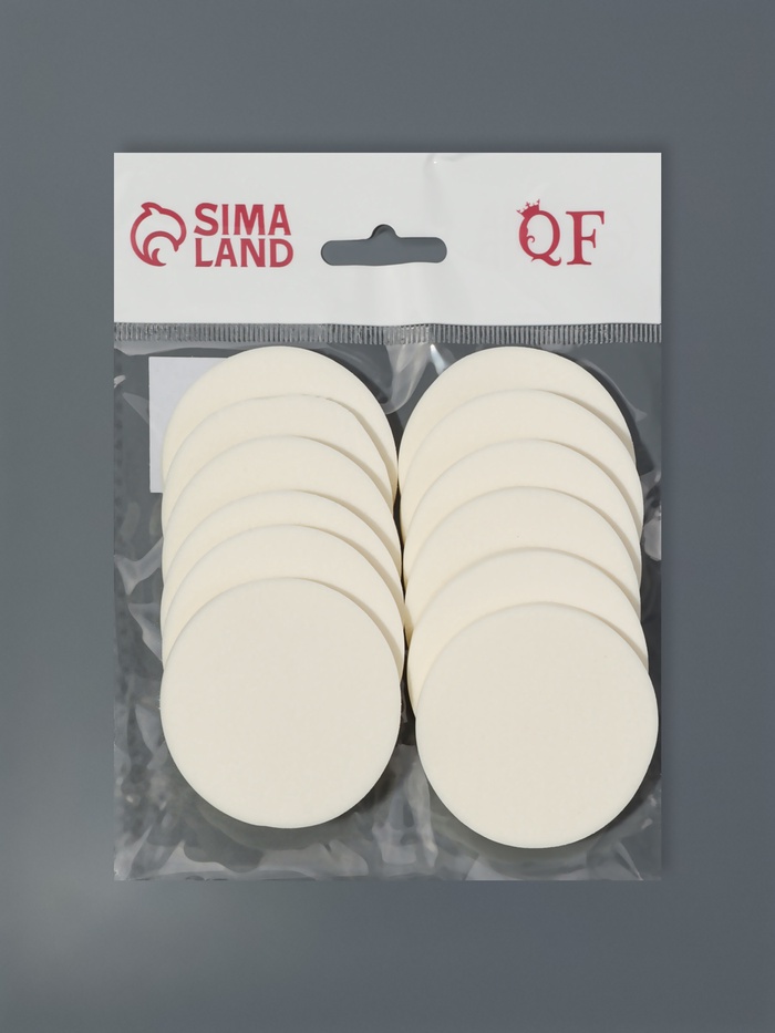 Спонжи для макияжа, 12 шт., d=5.3 см, белые