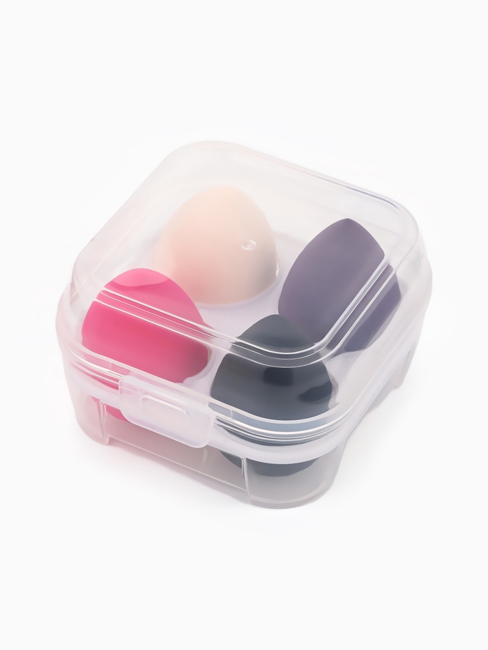 Спонжи для макияжа, набор - 4 шт., увеличиваются при намокании, разноцветные