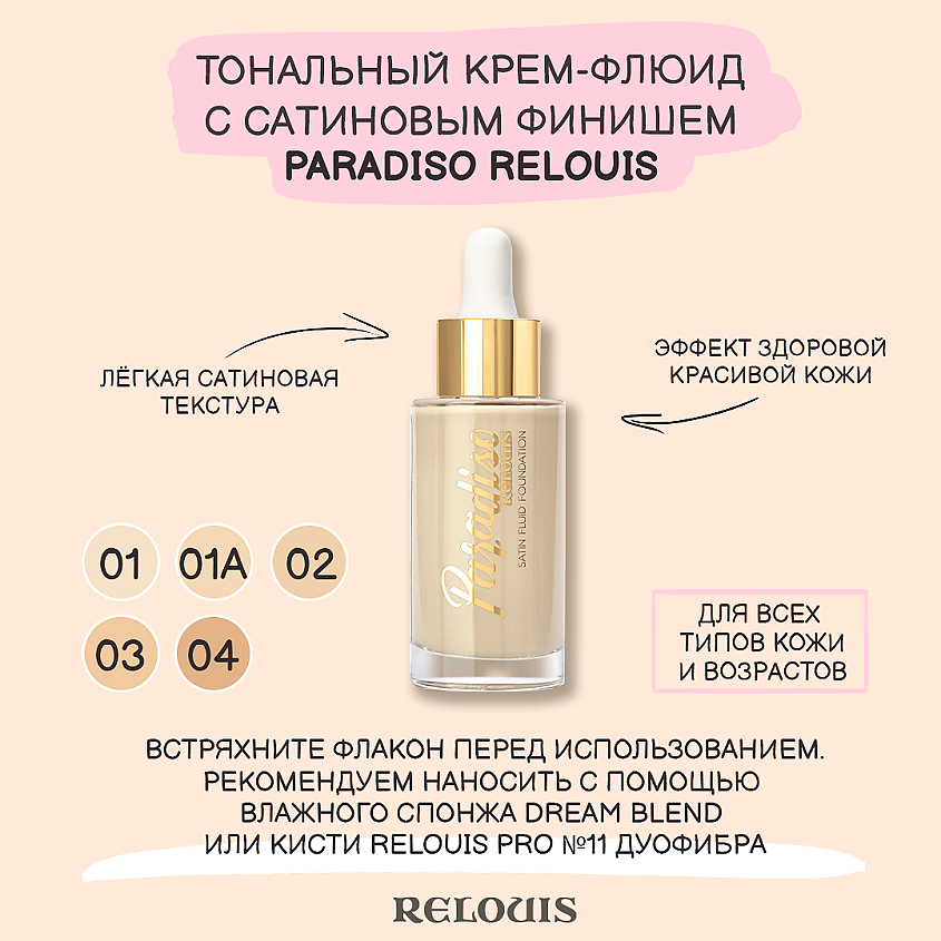 RELOUIS/Крем-флюид тональный c сатиновым финишем Paradiso 04 natural sand 03.26 г